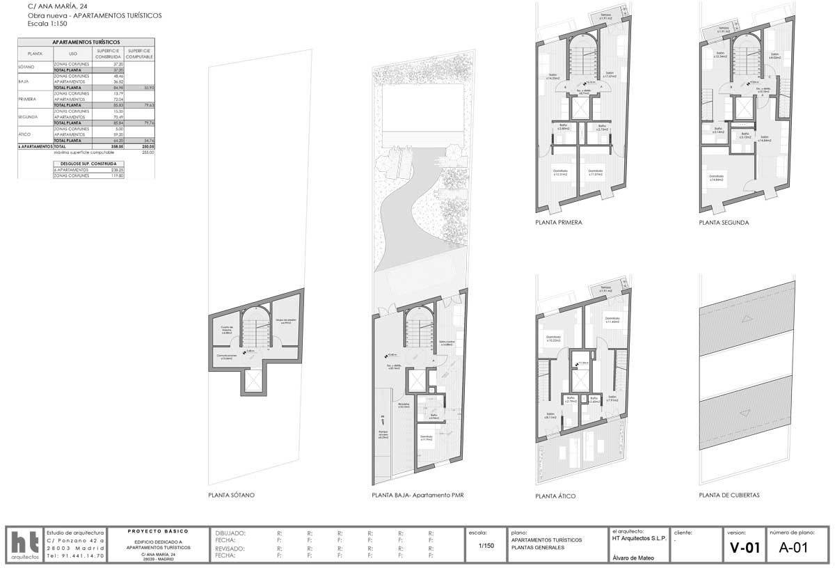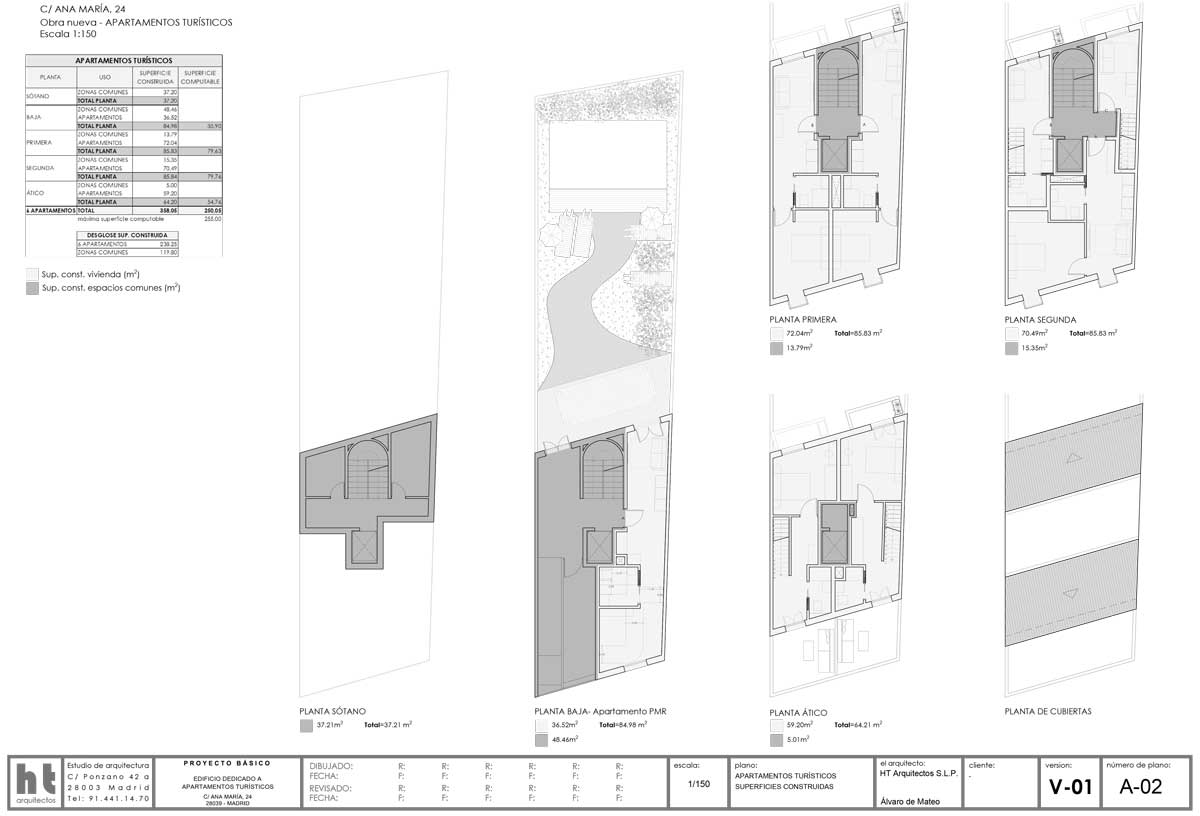 Promoción de 6 apartamentos turísticos con piscina y zona ajardinada exterior en el barrio de Tetuán (Madrid).